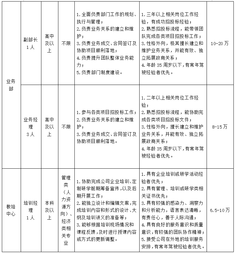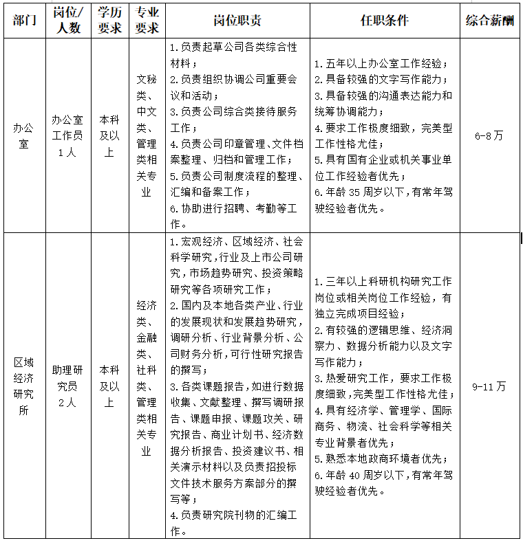 二、招聘岗位及条件