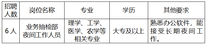 现因业务发展需要,拟招聘工作人员6人,具体招聘条件如下: